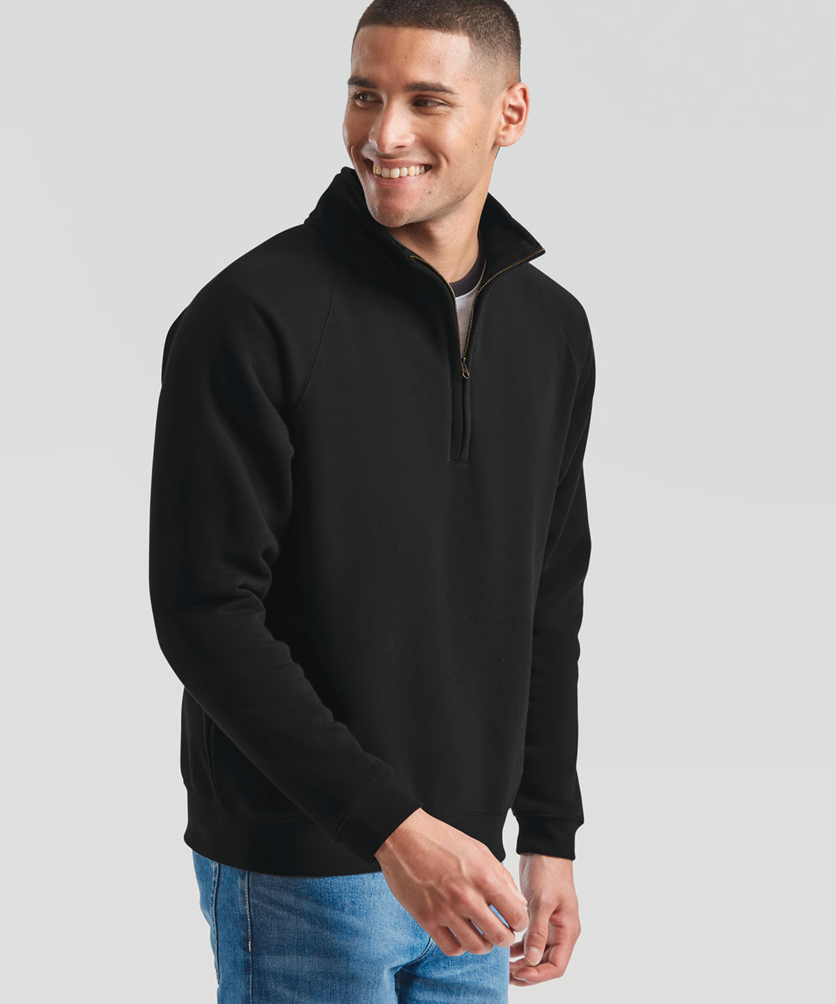 Unveil the versatility of Fruit’s Premium 70/30 Zip-Neck Sweatshirt for men, offered in an array of colours. This hoodless, full-zip sweatshirt is an ideal canvas for garment decoration, boasting a concealed metal zip for optimal printability. Revel in comfort with features like single Jersey back neck tape, while the cotton/elastane waist and cuff ribs ensure a tailored fit. Complete with a cadet collar for added warmth, this men’s zip-up sweatshirt is perfect for any occasion, blending style and functionality effortlessly—an essential addition to your wardrobe. Perfect for mens yacht wear.